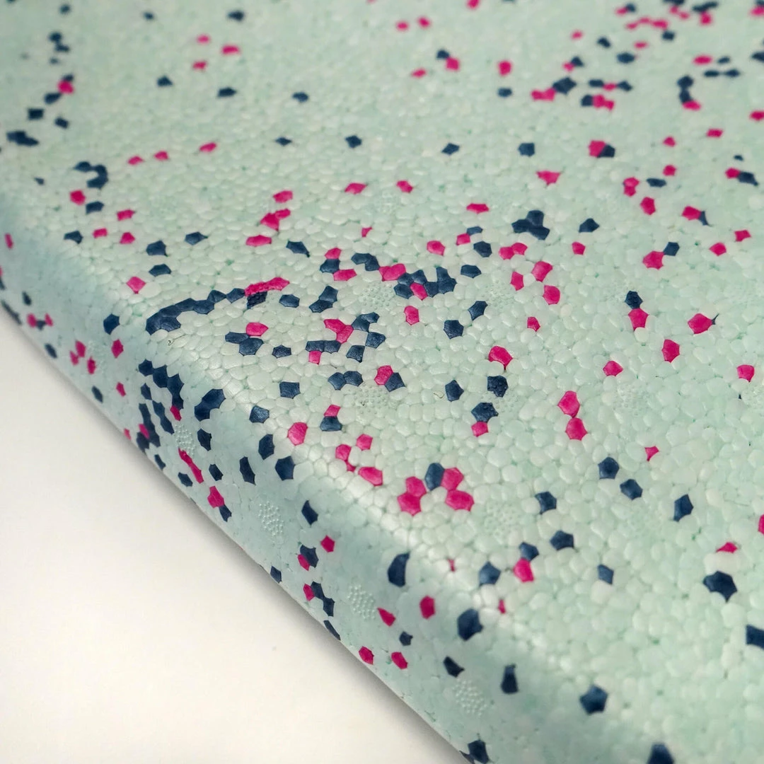 EPP is composed of 95% air and 5% material, these polypropylene balls are inflated in a mold to 20 times their size in contact with steam to create the foam that makes up the bodyboard.