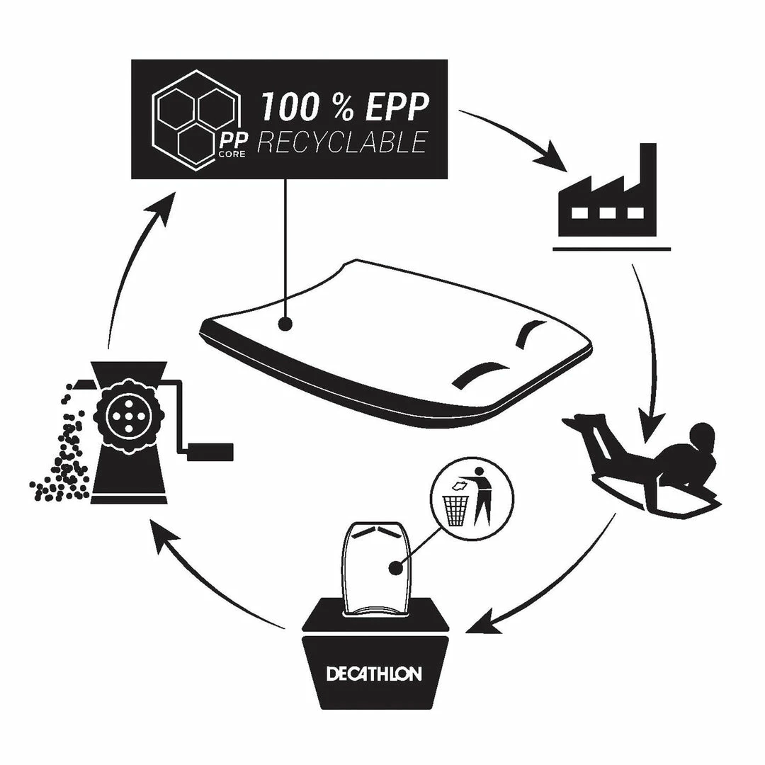 Additionally, this process does not require glue. Manufacturing a board in EPP does not generate any waste, and the material is 100% recyclable.