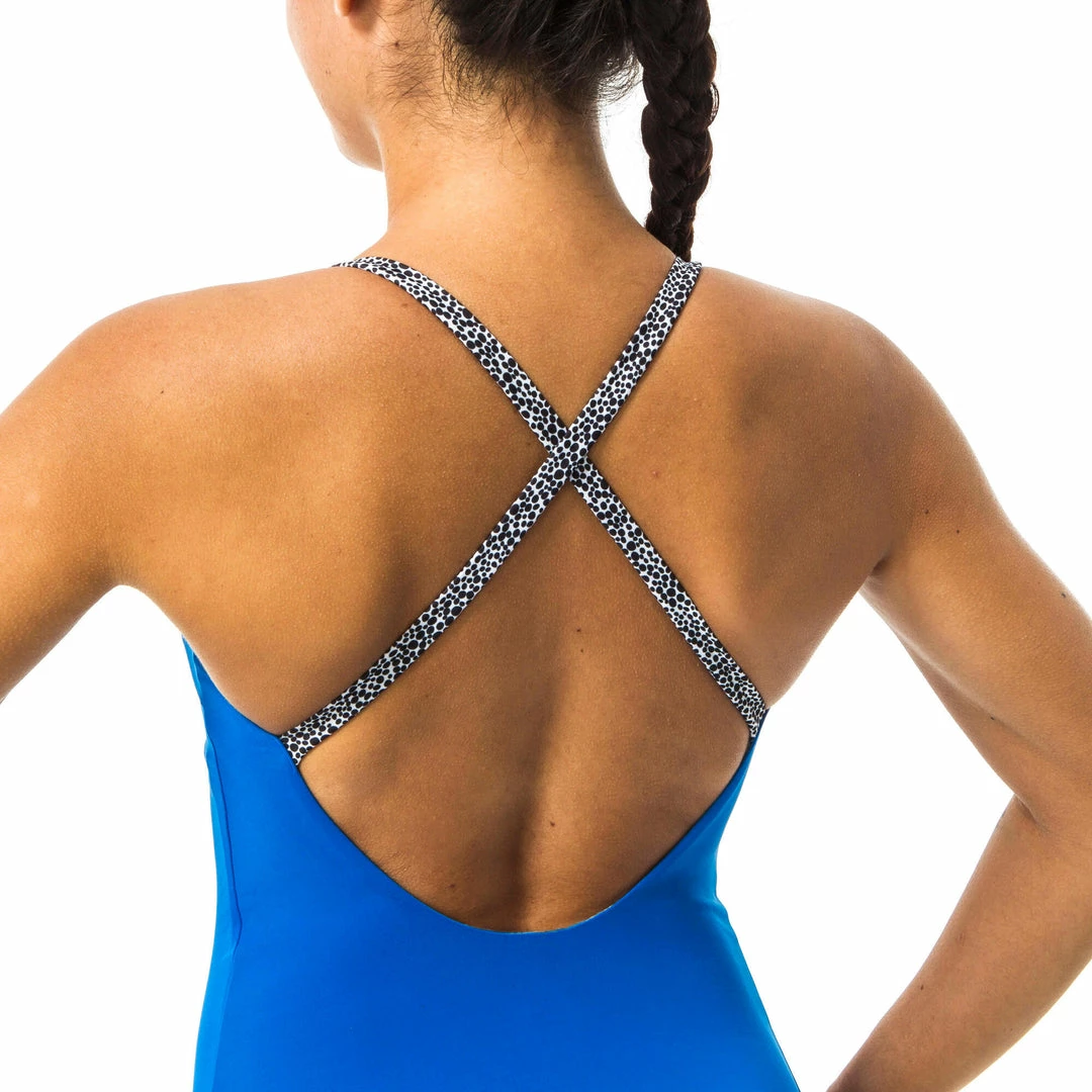 X-shaped back: A swimming swimsuit should focus above all on comfort, to allow you to perform your movements with ease, without discomfort or pain. That is why it is important to choose the cut of the back of your swimsuit carefully. In X-shaped back swimwear, crossed straps allow good freedom of movement. As the straps are not fixed together, they adapt to all body types.