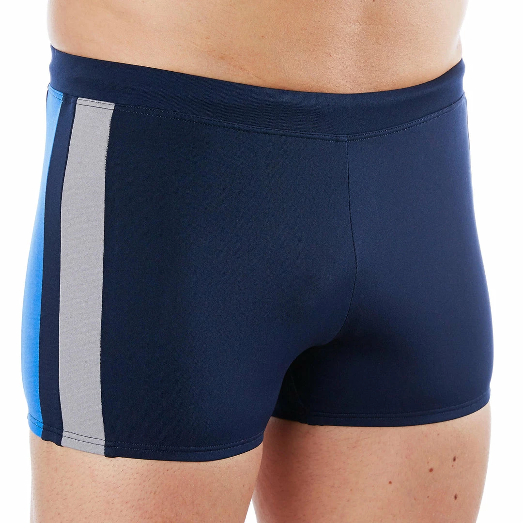 Classic, with 2 contrasting side bands, the highly chlorine-resistant swimming boxers 500 YOKE are the ideal item for swimming longer.
