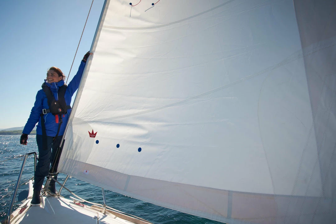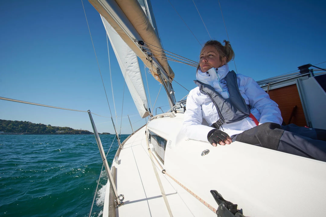 This warm women’s jacket is a sailing oilskin with a new twist, made from a soft waterproof fabric.
