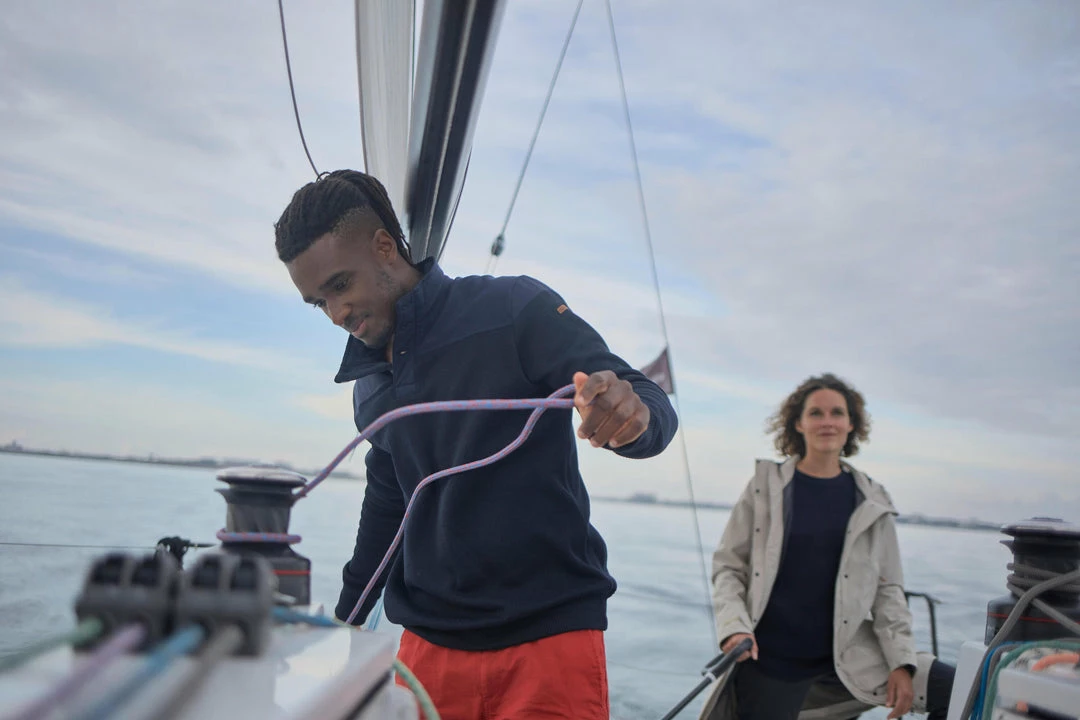 Our sailing designers have designed this authentic and elegant sailor’s sweater. It will keep you warm when sailing in cool weather, between 45Β°F and 50Β°F.