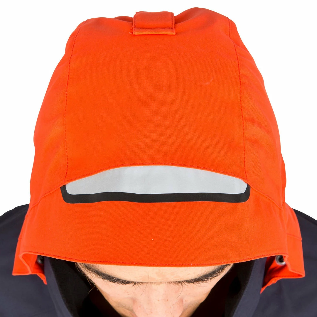 Light reflective panels on arms, collar, and hood intensify low light sources.