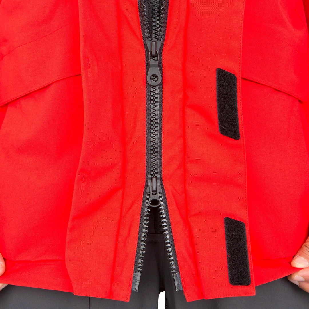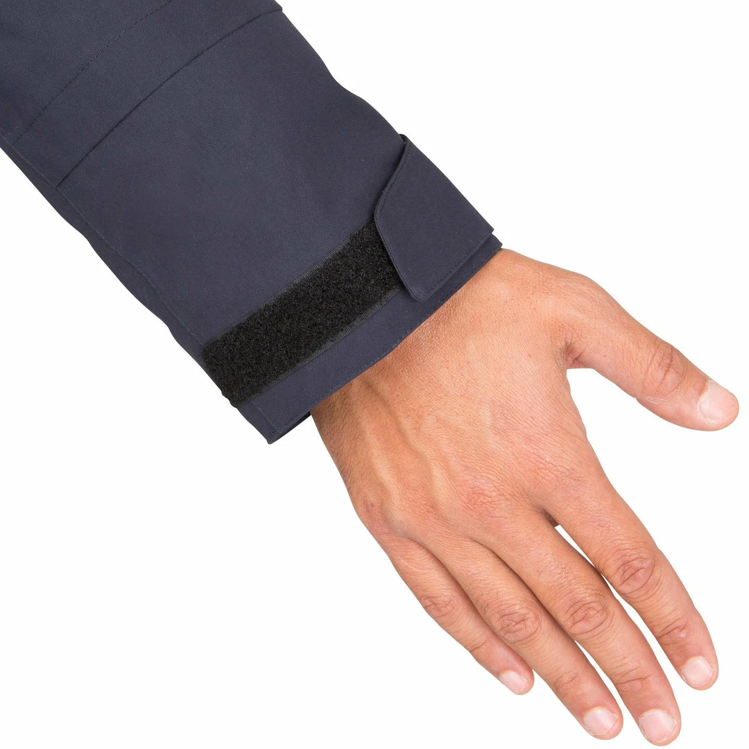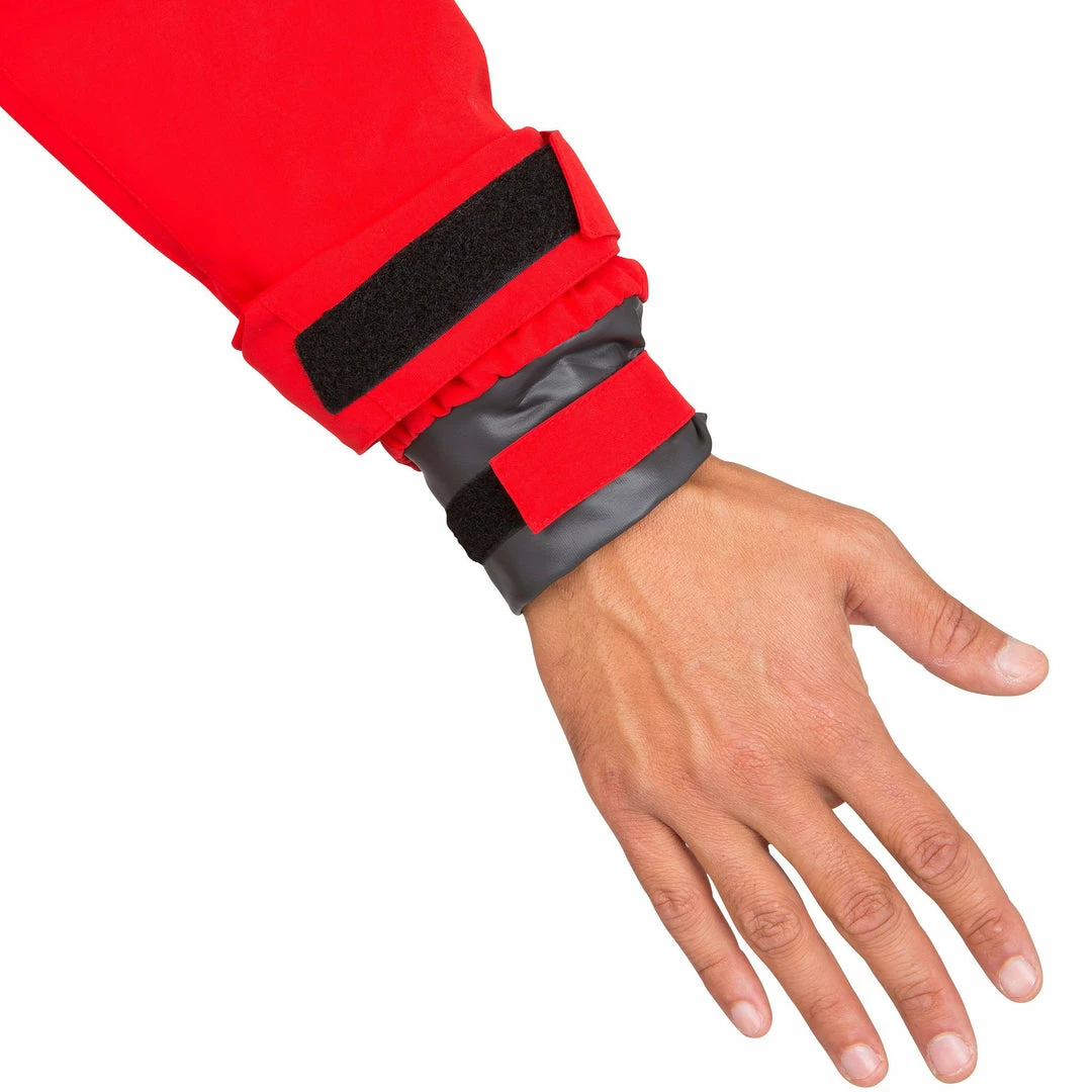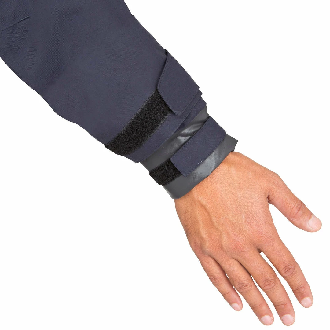 The wrists are equipped with adjustable double storm cuffs. The synthetic rubber inner sleeve is adjustable with a rip tab to provide an excellent seal.