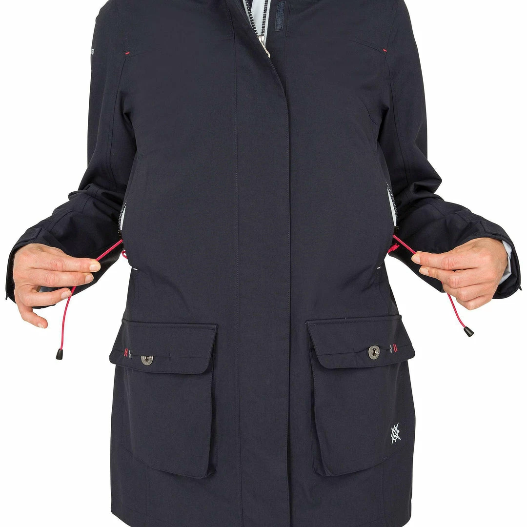 This long, waterproof and breathable women’s jacket will provide long-lasting protection in bad weather, whether you are inshore sailing or just out and about.