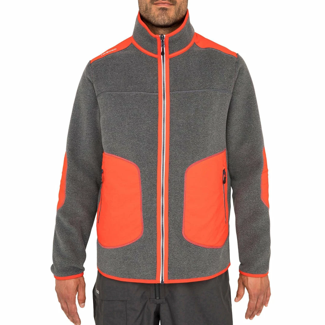 Water repellent and reversible fleece jacket with 2 sides including one high-tech side: with shoulder and elbow reinforcements for abrasion resistance. For sailing with or without a waterproof jacket!