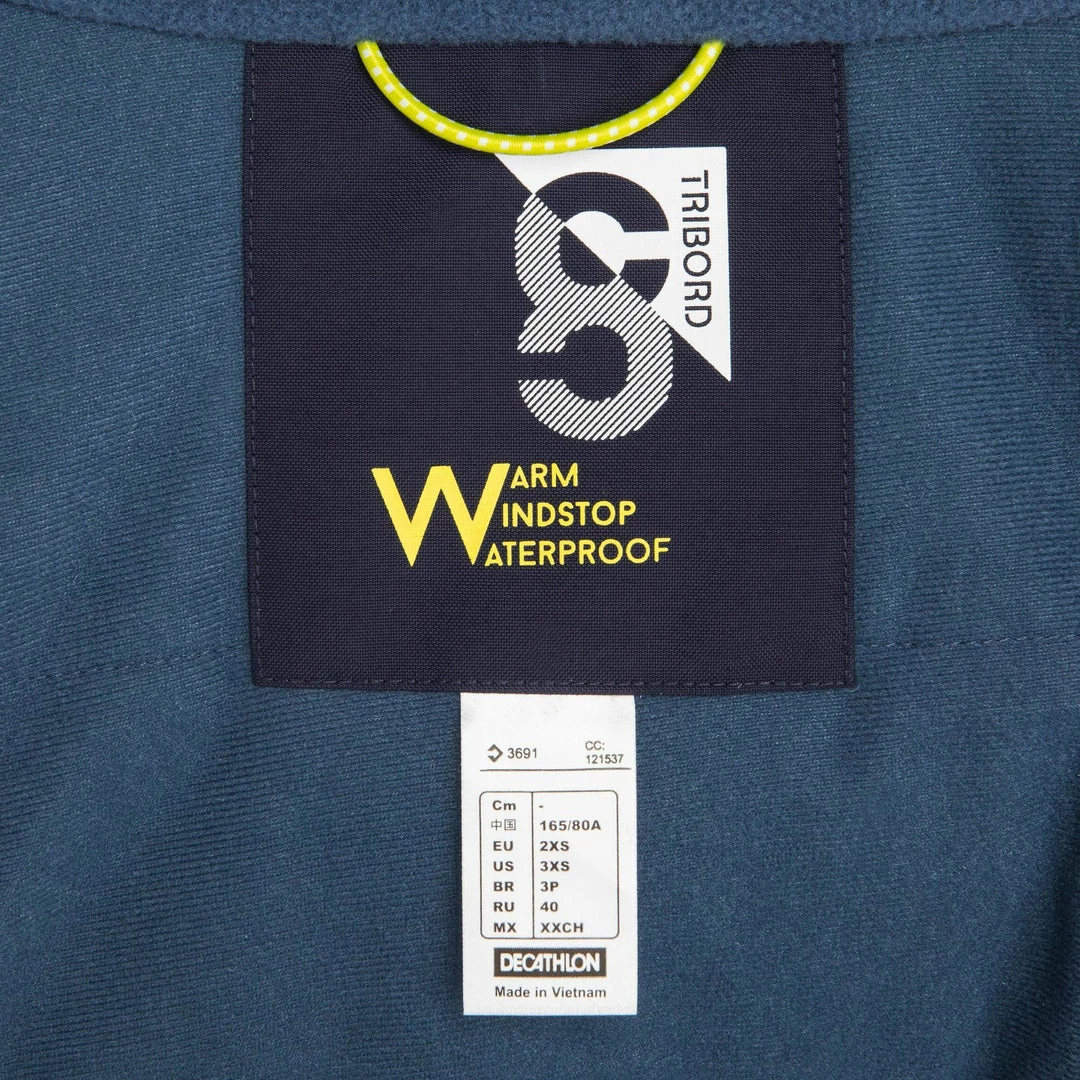 This waterproof sailing jacket will keep you warm and dry! A long, lined jacket with zipper pockets; a real plus when sailing!
