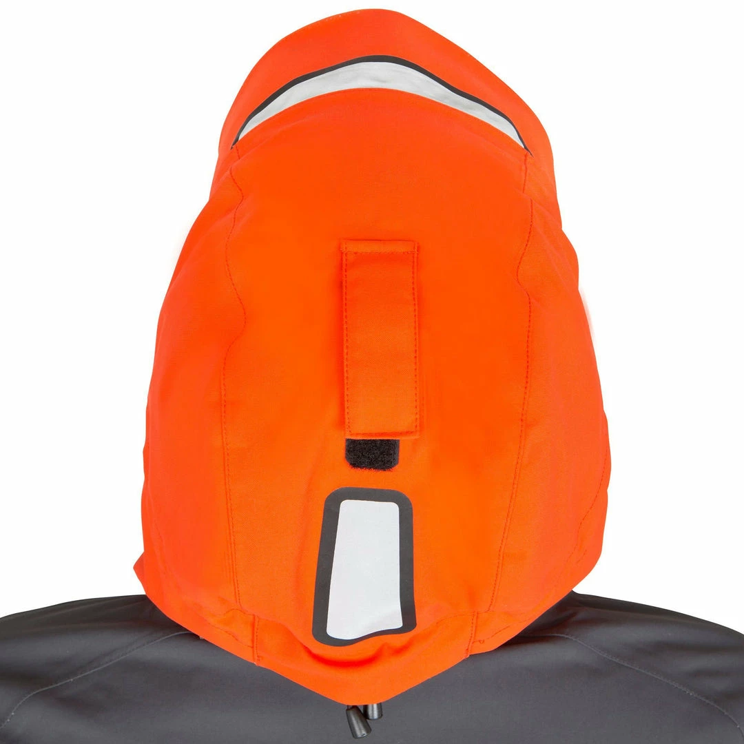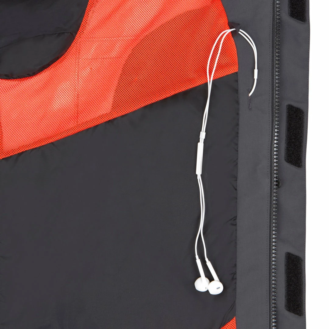 Three-way adjustable hood inside the collar. Jacket hem tightening.