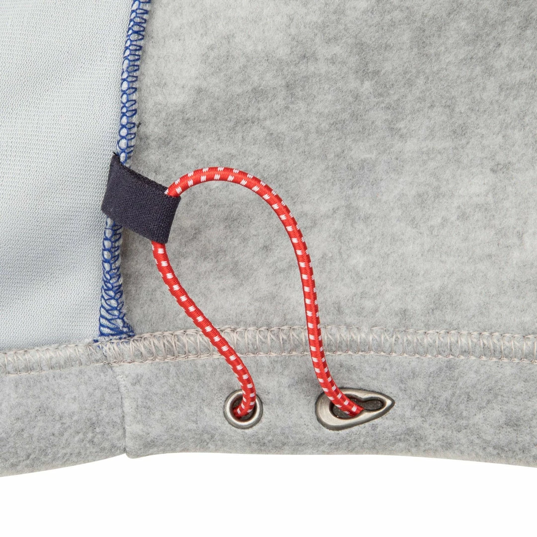 Warm 8.5 oz./sqm density fleece, polo neck, waist adjustment to conserve heat.